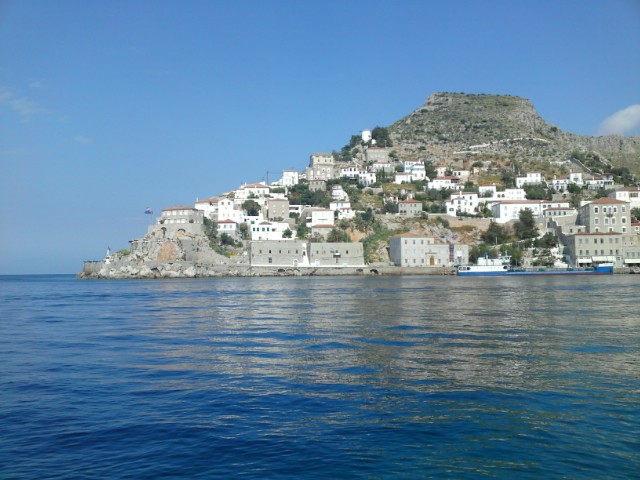 När vi kom till Hydra var vädret sådär. Sol och varmt varvat med en kall vind som blev ännu kallare när solen gick i moln. Men här är vackert och det händer grejer hela tiden. Båtar kommer och går och åsnor och båttaxi får ständigt nya passagerare.
