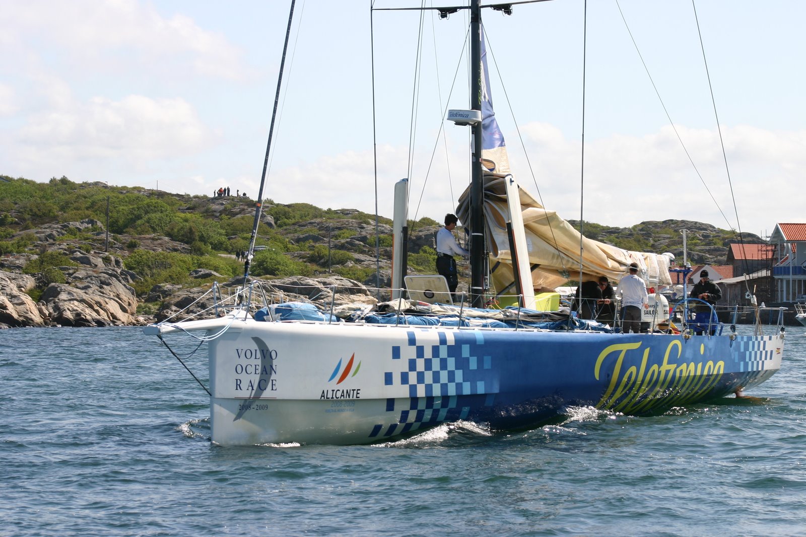 Teléfonica Blue – som var den båt som smällde på den bohusländska graniten ordentligt ca en timme efter start.