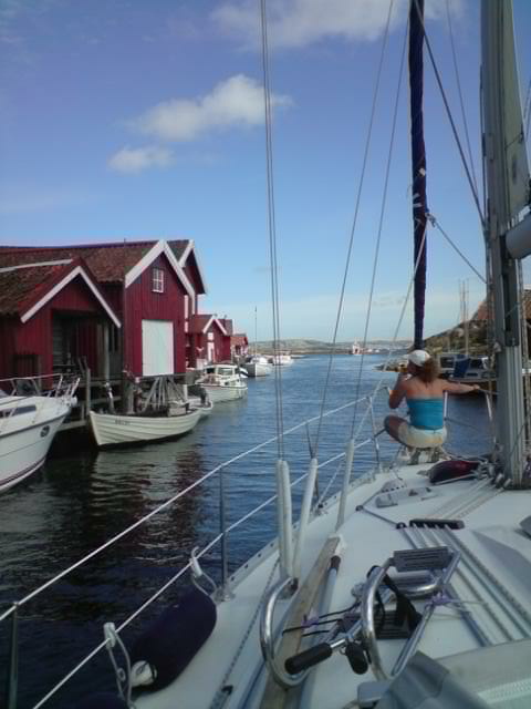 På väg mot Hunnebo passerade vi den lilla kanalen genom det genuina Hasselösund. Den smala passagen är otroligt vacker och vi ville visa den för våra vänner. Fru vän tog bilden.
