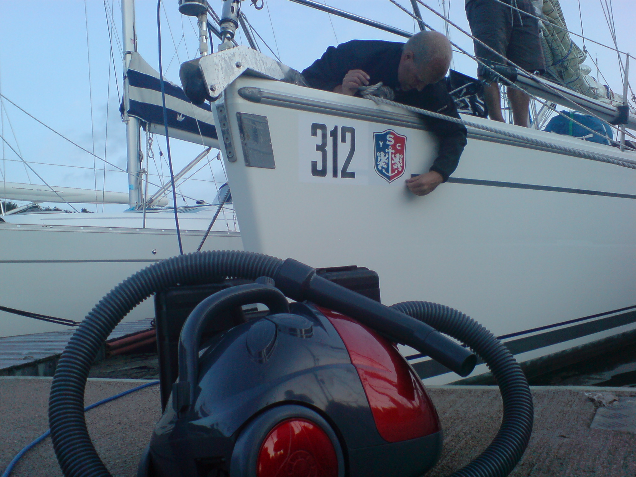 Ombord på Sjöglans råder febril aktivitet. Båten startar i den tredje startgruppen i Tjörn Runt. Nu lättas båten och till och med dammsugaren lämnas i land.