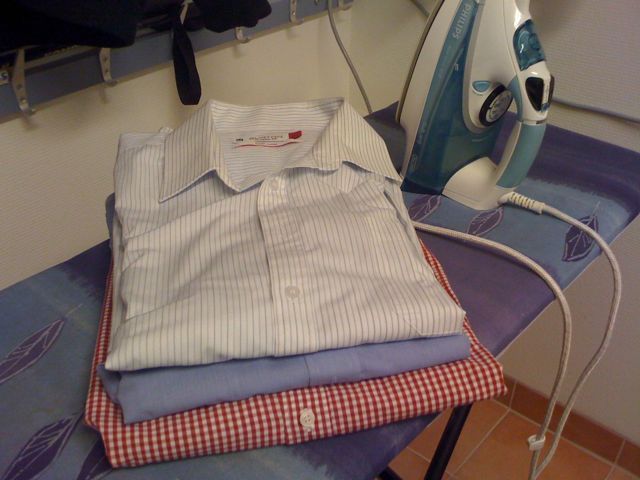 Maken är ute och reser igen och packade därför sin väska igårkväll. I packbestyren ingick även att stryka skjortorna som han skulle ha med sig. Just det, ha med sig…