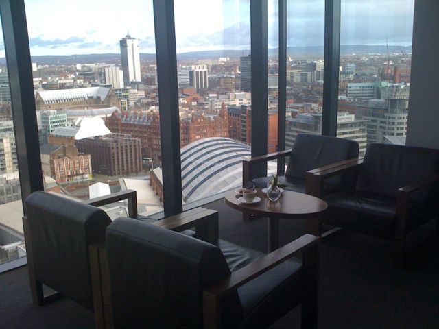 Innan min yngsta lillasyster hämtade oss på hotellet för en middag hos dem tog maken och jag en fika i hotellets lounge. Den ligger på 23:e våningen och utsikten är verkligen häftig – även den genom golvet. Jag drog mig faktiskt lite innan jag ställde mig på specialglaset…