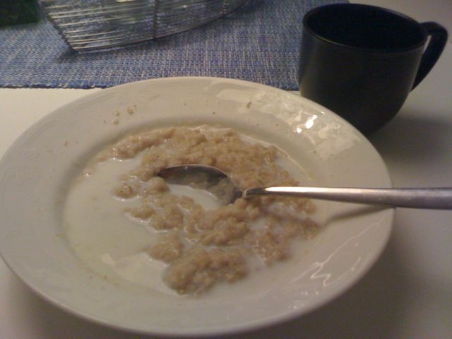 Havregrynsgröt är faktiskt gott och man (jag) blir inte sådär stoppmätt av det.