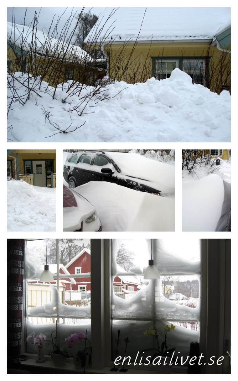 Vilken vinter vi har! Vem hade dessutom kunnat drömma om att det skulle komma ännu mer snö? Nu har snön legat i två månader. När hände det senast? Det har kommit massor sen igår och kommer nu ännu mer – dessutom ska det snöa ytterligare i veckan som kommer så det blir till att fortsätta skotta. Vissa delar av tomten har vi dock gett upp på… Det behöver inte finnas två skottade vägar till ytterdörren till exempel. Till våren – när snön är borta kan vi börja ta den vägen igen 🙂