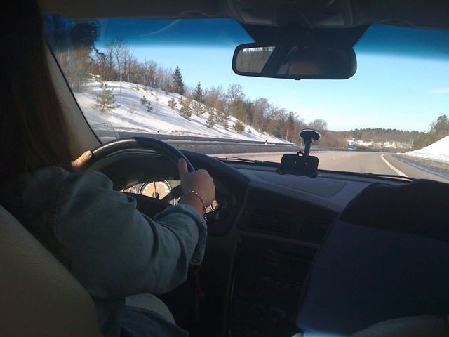Mellandottern håller ju på och övningskör och premiärkör nu på motorvägen. Det är lagom långt för ett träningspass så det var självklart att hon skulle köra idag. Det innebär att jag sitter i baksätet och har det bra!