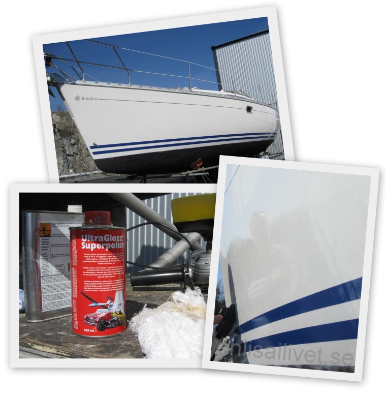 Babordsidan är klar och nu är det dags för styrbordsidan. Vädret kunde inte varit bättre. Sol och 15 grader. Jag har bara t-shirt och fräknarna poppar upp i klasar i ansiktet på mig 🙂