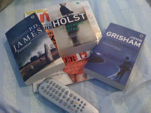 Annars händer inte mycket här. Vi kollar på tv, läser, äter godis och vilar. Det har ju ändå varit en rätt tuff dag och ingen av oss sov så mycket natten till idag.