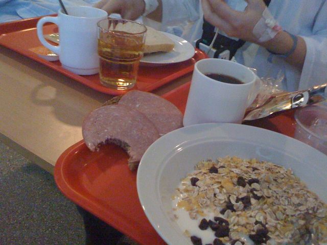 Först efter lunch är det utskrivning så även förmiddagen lär bli lååång, men sen ska vi kunna åka hem. Även det får vi definitivt besked om från läkaren om en stund.