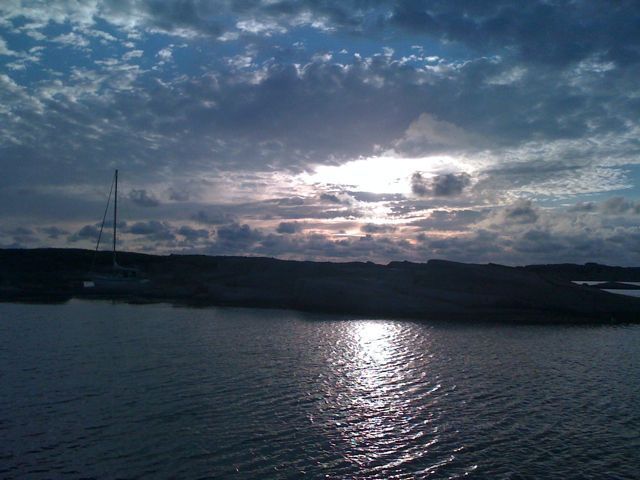 Ännu bättre blev det när Indiscretion anslöt. Nu har vi ätit gott och även avslutat med en kalasgod äppelpaj, sett solen gå ner och även kunnat se en måne, i form av en apelsinklyfta, stiga uppåt på himlen. Det enda som saknades var Alinde och mareld…
