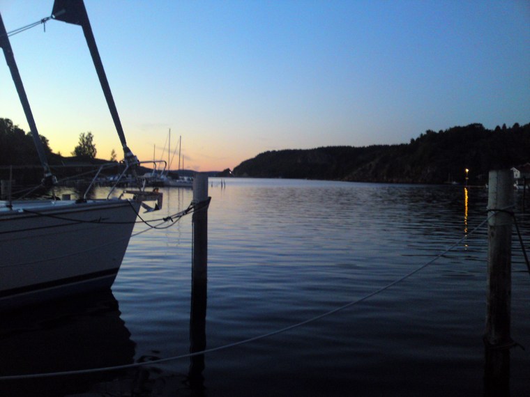 När vi hade lagt fast i Henån, och vilken snygg tilläggning sen, och packat ur våra grejer gick vi en sväng på bryggorna. Det kändes nästan som en sommarkväll – tills vi kom till bilen och såg att det bara var 10 grader 🙂