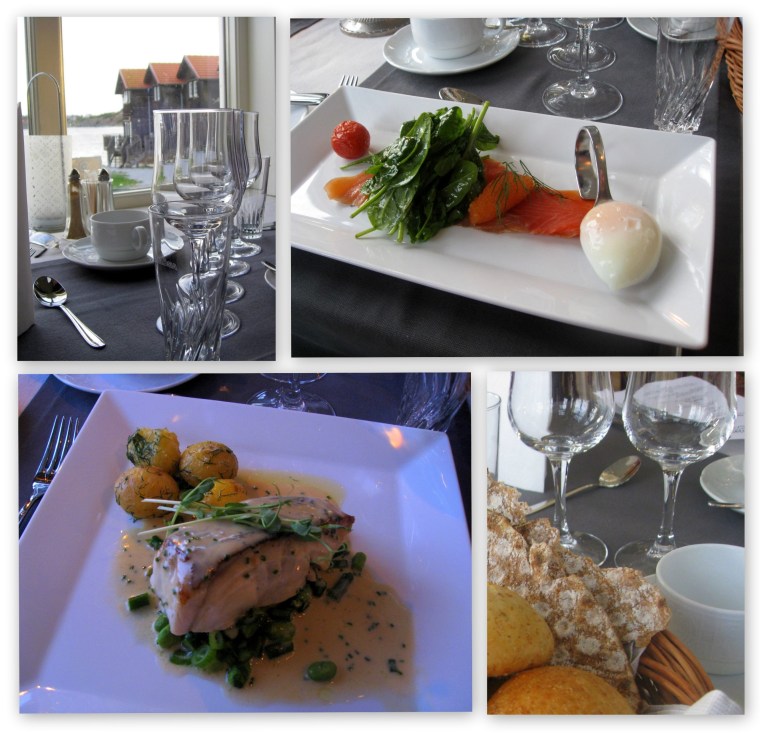 Svärfars svägerska hade fyllt jämna år och bjöd idag på middag på Nösunds Värdshus. Vi visste precis var det låg och hur det såg ut – från vattnet… Vägen runt Lyr har vi gått många gånger med båten, dock utan att stanna till där. Vacker är det oavsett vilken väg man kommer…
