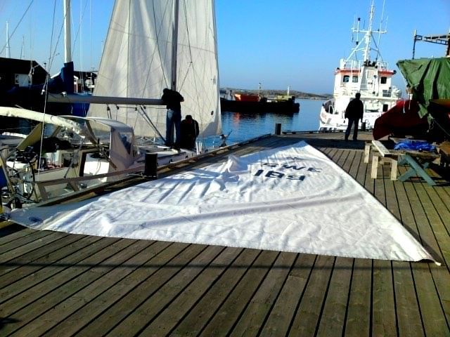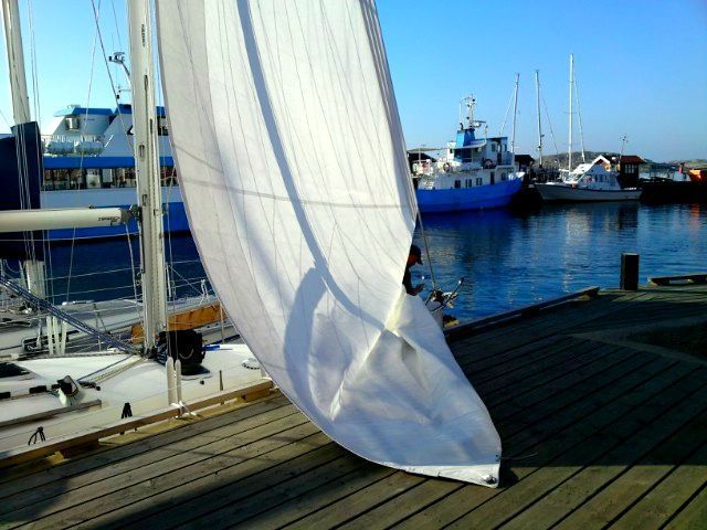 När när vädret var så idealiskt passade vi på att rulla ut seglena och torka dem för att sedan ta av dem. Till veckan väntar avmastning och ska man nu ändå ta av dem kan man definitivt inte göra det i bättre väder. Varför vänta på duggregn och snålblåst?