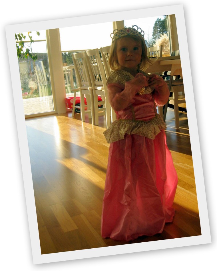 Tyvärr kan jag inte vara med och fira henne idag men i söndags hälsade vi på och då fick hon sin present. Självklart blev det en prinsessklänning till prinsessan! Längtar efter henne och hennes familj men vi ses ju snart igen.