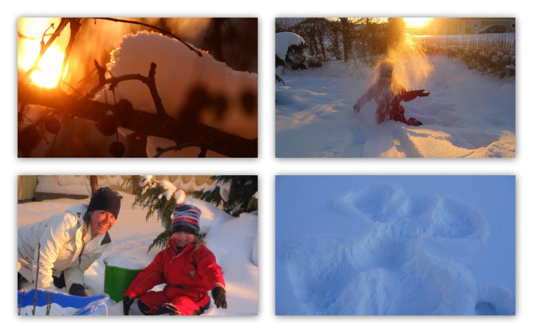 Det var länge sedan döttrarna var små och jag var med dem ute i snön och lekte men takterna satt fortfarande i. Jösses vad roligt vi hade systerdottern och jag. Hela trädgården är nu full med snöänglar. (Vissa är dock modellen större och gjordes av hennes far när vi badade tunna på julaftonskvällen)