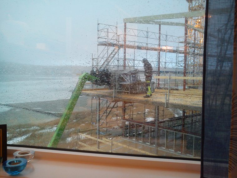 Vissa dagar känner man lite mer för dem som arbetar utomhus. Idag är en sån dag. Det blåser duktigt, haglar, regnar och är soligt om vartannat. På insidan fönstret är det istället varmt och skönt, även om det låter mycket om blåsten även här. Jag avundas verkligen inte byggarna på utsidan…