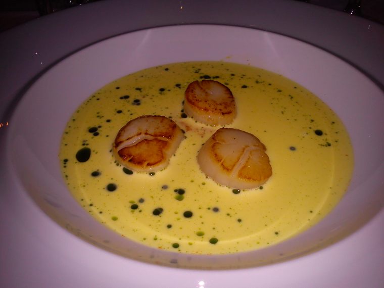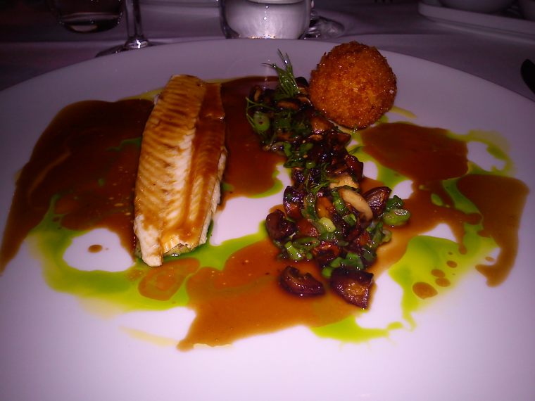 Jag valde Pilgrimsmusslor till förrätt men annars valde maken och jag samma mat. Sjötunga till varmrätt och husets ostar efter maten. Av ostarna hittade jag en klar ny favorit. Taleggio. Inget jag tror mig ha smakat tidigare men något jag definitivt kommer att tillföra ostbrickan även hemma (och ja – vi fick två olika vita viner till ostarna :-))