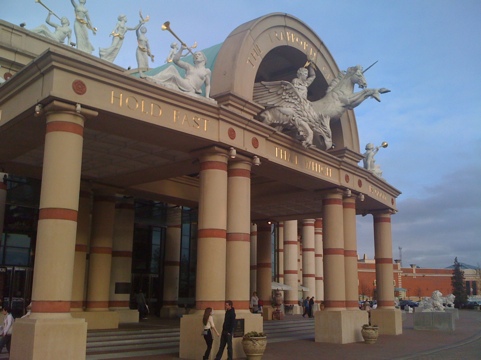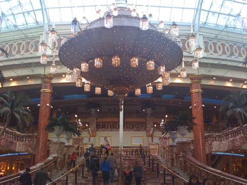 Efter att vi hade hämtat lilltjejen åkte vi till Trafford Centre, ett helt fantastiskt shoppingcenter både shopping- och miljömässigt. Där mötte svågern upp. Han haft jobbat idag och anslöt först vid femtiden. Det blev en god middag på Carluccios och självklart med ett glas vin till. Det glaset skulle visa sig göra gott för shoppingen lite senare.