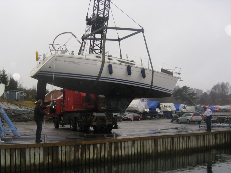 Igår var det sol och gott väder och idag regn och rusk. Gissa vilken dag vi sjösatte? Idag så klart. I regn och rusk. Men – nu är det officiellt vår. Båtsäsongen har börjat.