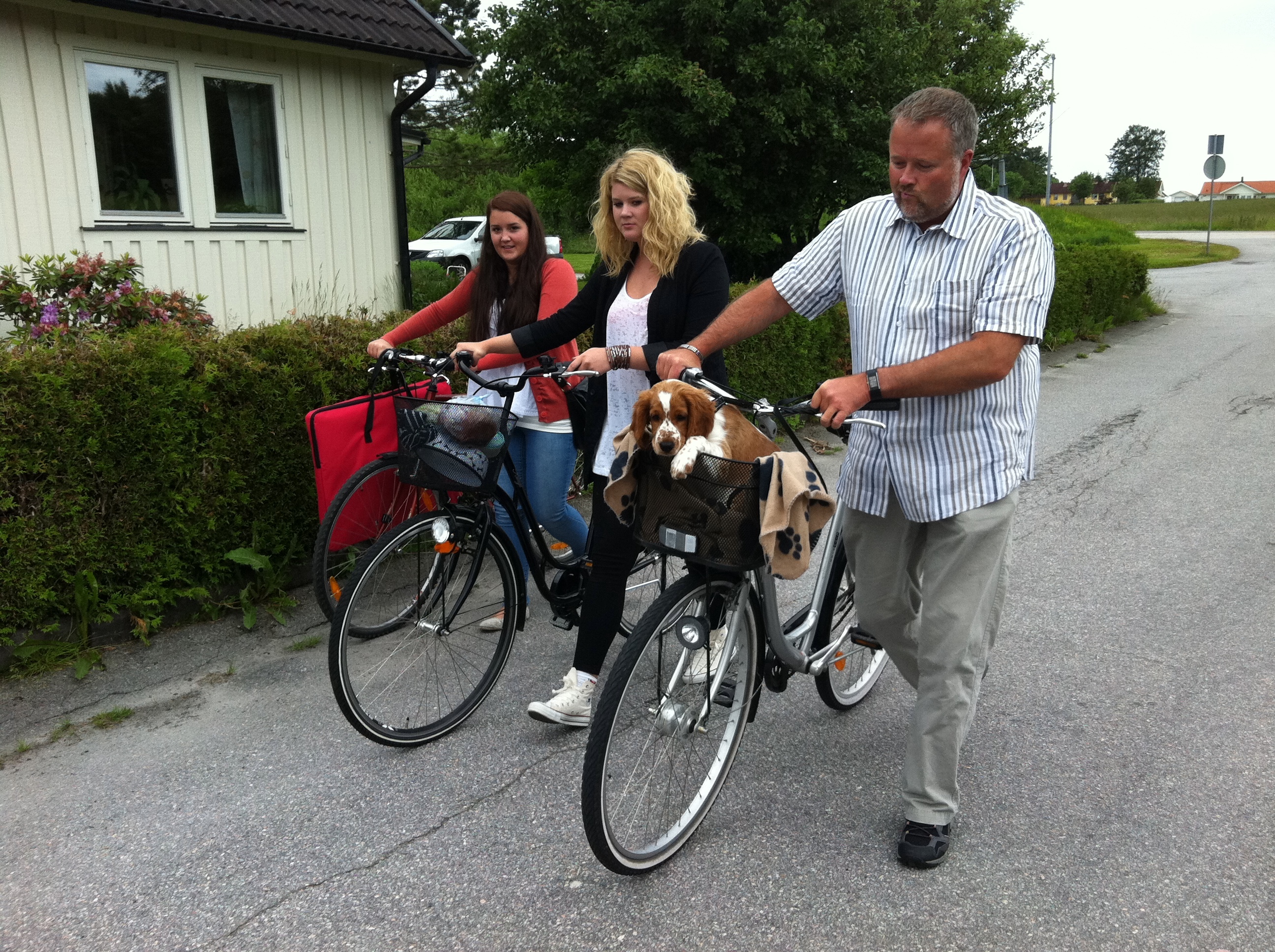 Då kom vi på det! Cykelkorgen kunde hon ju sitta i. Det var värt ett försök och det misslyckade kapitalt. Men gulligt var det, den korta stund det varade.
