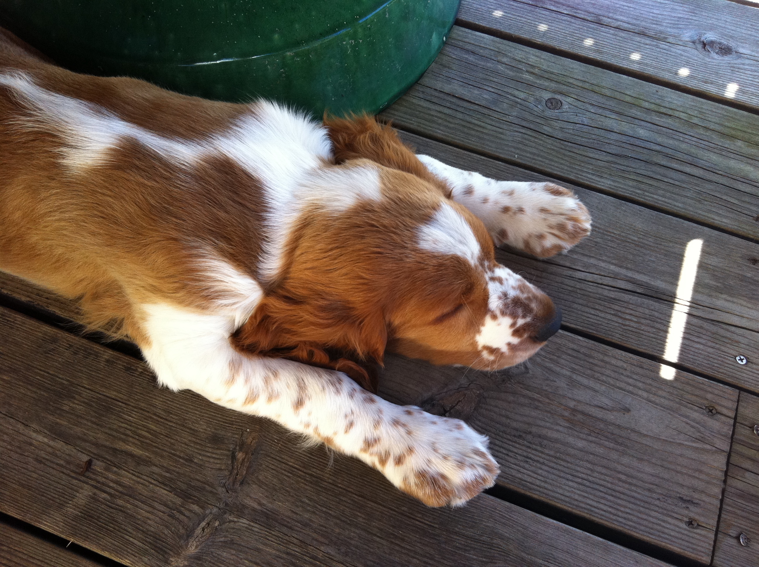 Hon gick hellre så idag är hon lite tröttare än vanligt. Skönt då att kunna sova i skuggan på altanen.