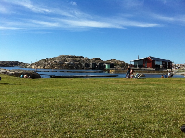 Vid tretiden dök våra vänner upp för att hälsa på oss i båten. Det blev en mycket trevlig eftermiddag/kväll med fika, bad och grillning. Det måste ha varit superexotiskt för dem att åka ända till Skärhamn för att hälsa på oss.