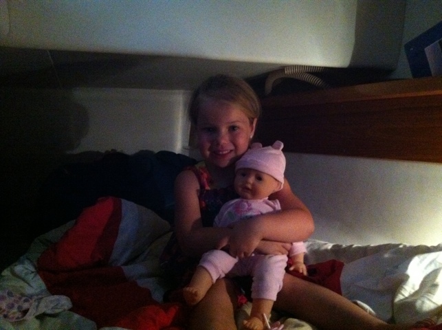 Det tog inte lång tid för henne att vant klättra runt på båten, eller av och på för den delen heller. Flytvästen är på så fort man klättrat upp ur ruffen och får tas av när hon backat nerför trappan.