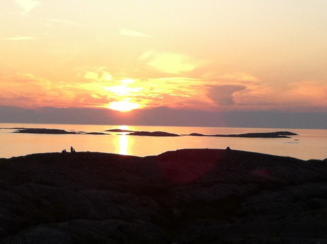 Dagen har sedan ägnats åt allt som hör båtlivet till. Bada, bada, åka gummibåt, klättra i klippor, klättra upp i lotsutkiken, bada lite till, sola, grilla och slutligen titta på en fantastisk solnedgång.