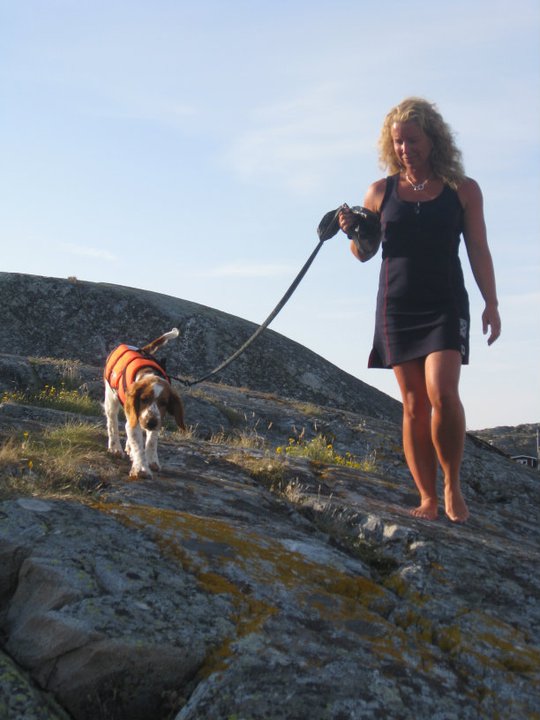 När vi sedan gick inomhus för lite fika och teori lade sig alla hundar ner och somnade gott. Återigen kom vår lilla primadonnan fram. Lägga sig ner på det blöta golvet? Utan en filt eller handduk…? Skojar ni? Så verkade hon tänka och tittade istället på oss med anklagande ögon och skakade i hela kroppen. Precis som jag längtar hon nog tillbaka till sommaren, då vi kunde vandra runt på solvarma klippor.