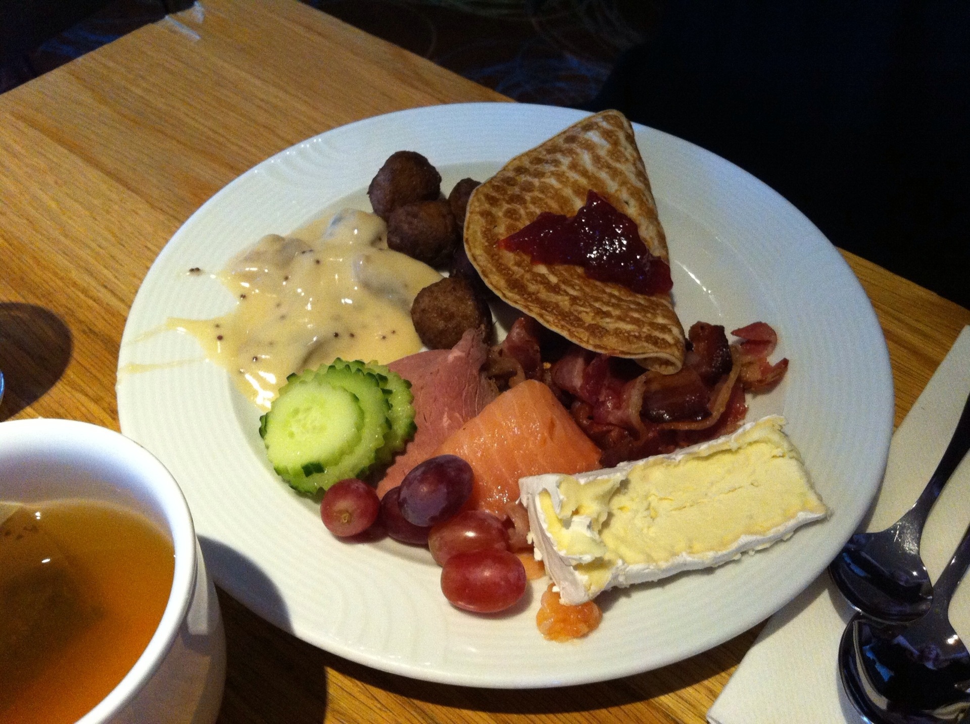 Efter en god natts sömn var det dags för hotellfrukosten. Måste säga att den var något av det mesta jag sett på länge. Fräsch och fin och med stort utbud. Vad man sedan väljer som frukost är ju lite olika från person till person men mätta blev vi och då har vi inte testat allt än. Det får vi ta imorgon.