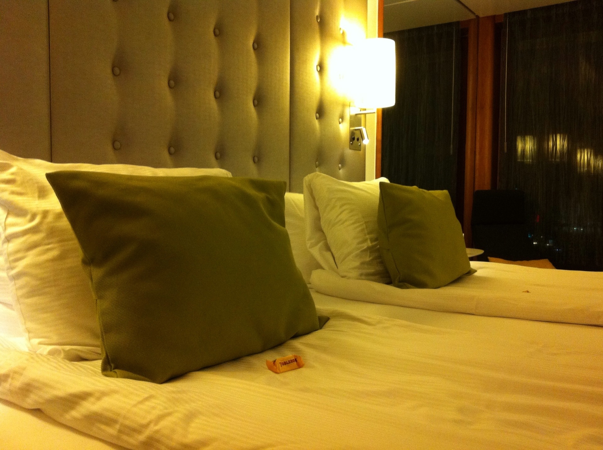 Väl framme på hotellet i Stockholm tog vi det bara lugnt. Det fanns plockmat i loungen och tonåringarna växlade mellan sitt rum, som de tokälskar (för att inte prata om badrummet som de älskar ännu mer…) och loungen som ligger på våningen över vår. Kolakakan var ”to-die-for” och ingen av oss går och lägger sig hungrig, hoppas jag.