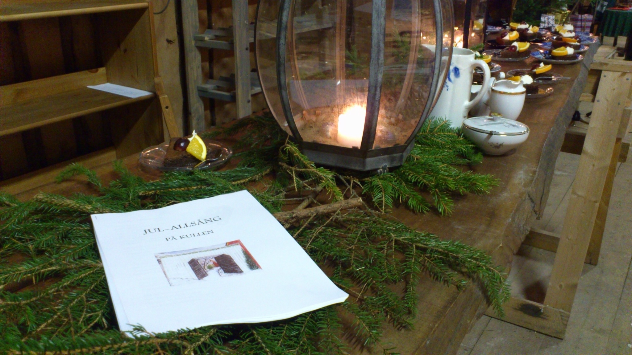 En god vän fyllde år idag och det firade vi genom att åka till Systrarna på Kullen. Där skulle det vara allsång med jultema i ladan. I ”paketet” ingick en supergod svampsoppa och kaffe med kladdkaka.