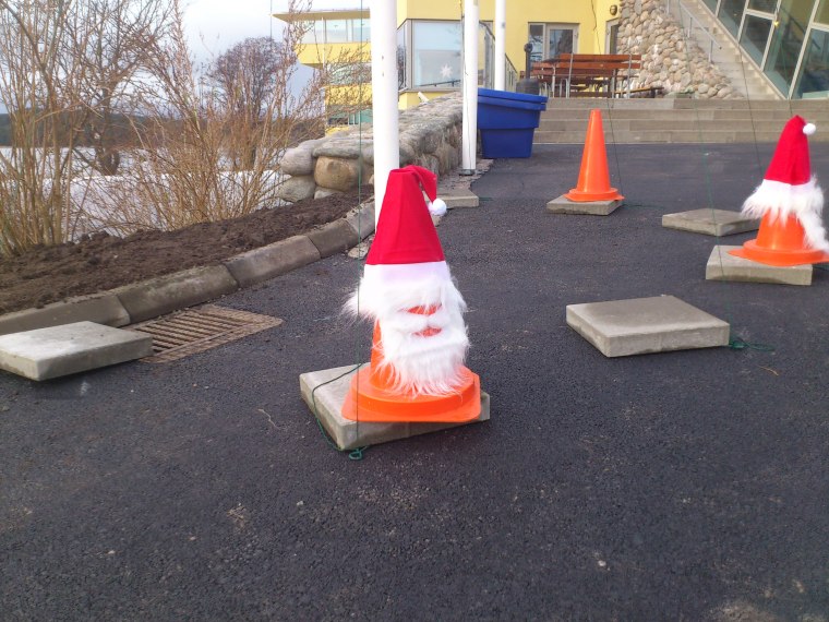 Utklädda koner Publicerat den 16 december, 201116 december, 2011 av en lisa i livet Om man har en ljusslinga (sån där som ser ut som en julgran) i en flaggstång kan man behöva markera ut att den sticker ut i vägen. Då kan man använda sig av koner och med fördel så här i juletid klä ut dem (konerna alltså) till tomtar 🙂 Betygsätt detta:Gilla Laddar in … Relaterade