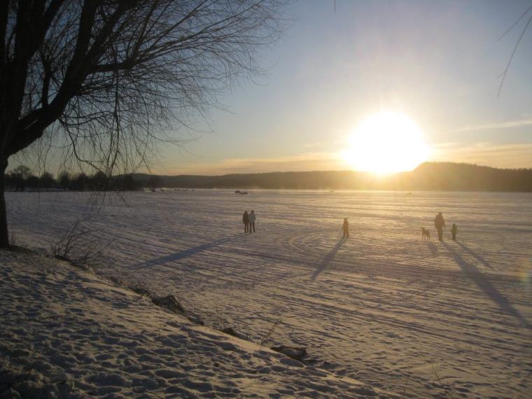 Vi var lite tidiga så vi åkte till ”andra sidan” Åsunden för att jag skulle kunna fotografera lite. Sjön låg frusen och det var fullt med folk, hundar, mopeder, crosscyklar och bilar (!) på isen och allt var sådär vackert som det blir en vinterdag när det är ett par minusgrader, vindstilla och solen strålar från en klarblå himmel. Det slutade med att maken och döttrarna fick köra vidare utan mig. Jag promenerade över sjön istället.
