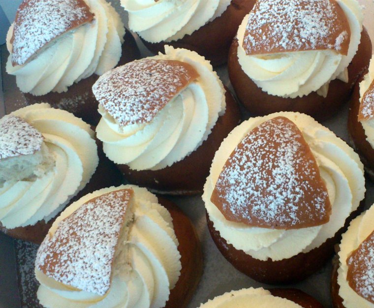 Egentligen tycker jag att man ska vänta till semmeldagen och äta årets första semla då men i år har jag fuskat. Jag åt en för ett par veckor sedan. Det gjorde inte att dagens semla smakade sämre. Riktigt mumsig var den. Nu lär jag inte behöva äta något mer alls idag…