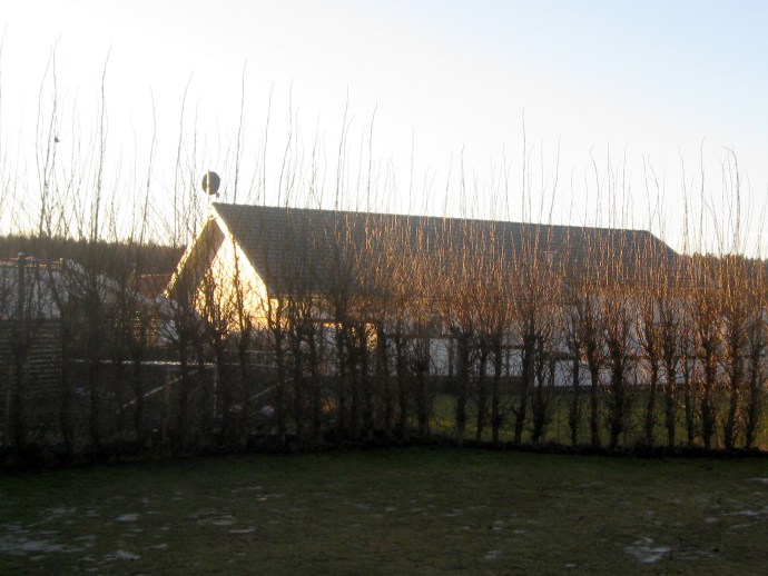 Jag vet inte riktigt vad vi tänkte när vi satte den. Vi tänkte nog något i stil med ”hoppas att den växer snabbt”. Balsaminpoppel är den i alla fall av, vår häck. Extremt tät och insynsskyddande på sommaren. Att den har just de goda egenskaperna beror på den hemskt dåliga egenskapen att den växer snabbt. Fast – det såg vi som en positiv egenskap när vi satte den. Hoppsan liksom – som det kunde bli.