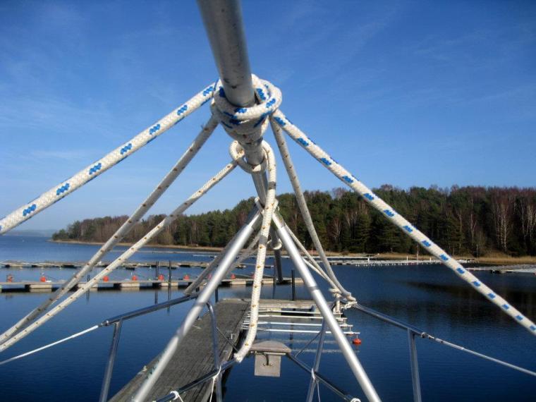Många knutar (knopar) ska knytas upp och många meter rep ska trasslas ut. Ovanpå det ska sedan själva täckställningen demonteras. Tyngsta momentet är nog ändå att vika den stora presenningen. Otymplig, stor och tung är den men på två fixar man det lätt (!).
