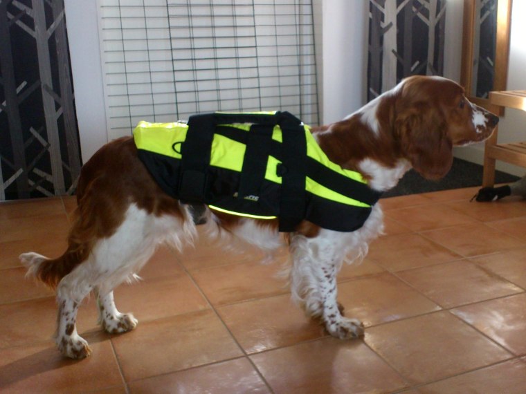 Istället behåller vi den från Baltic och lämnar tillbaka flytvästen från Hurtta. Det blir den tredje flytvästen för Sintra på ett år men nu räcker den upp till 40 kg och så stor ska hon väl ändå inte bli?