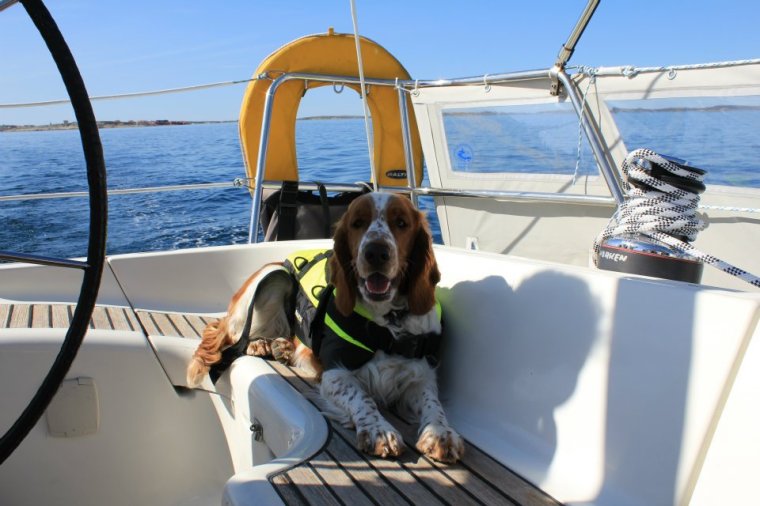 Vi stannade kvar på Käringön och bara njöt. Det var varmt och det var härligt. Någon segling var det inte tal om med de svaga vindar som var så vi bestämde oss helt enkelt för att bara vara innan vi styrde hemåt. Vi hann med både fika och lunch och Sintra fick skällt ut herr Adelsohn som kom gående på bryggan… Sorry där mellandottern – men hon viftade i alla fall på svansen… 🙂