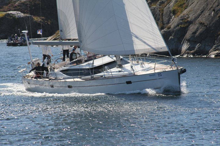 Samma båt men med lite annan besättning var med vid Tjörn Runt 2011 och då lyckades jag fotografera dem när de passerde Ängeviken på Tjörn.