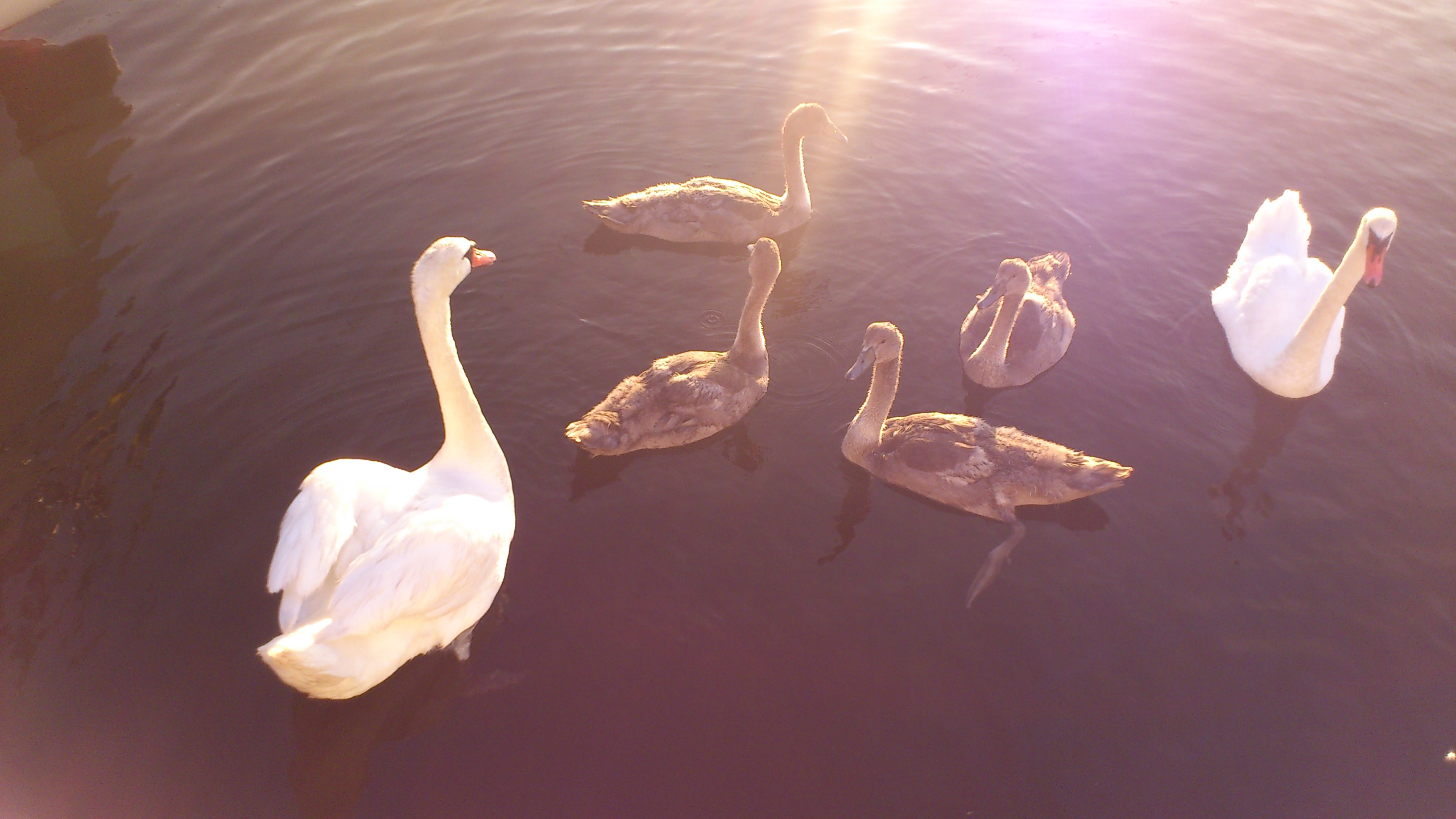 Ja tills svanarna dök upp… Ett par med fyra ungar! Vi kan väl säga så här… Det tog ett tag att lägga till med gummibåten efter toabesök iland (yngsta dottern har skadat sin fot och kan inte klättra av båten). Till slut förbarmade sig grannbåtens besättning och offrade lite av sin frukost för att locka dem till sig så vi kunde ta oss till vår båt. Hua säger jag. De fräste rätt bra. Svanarna alltså.