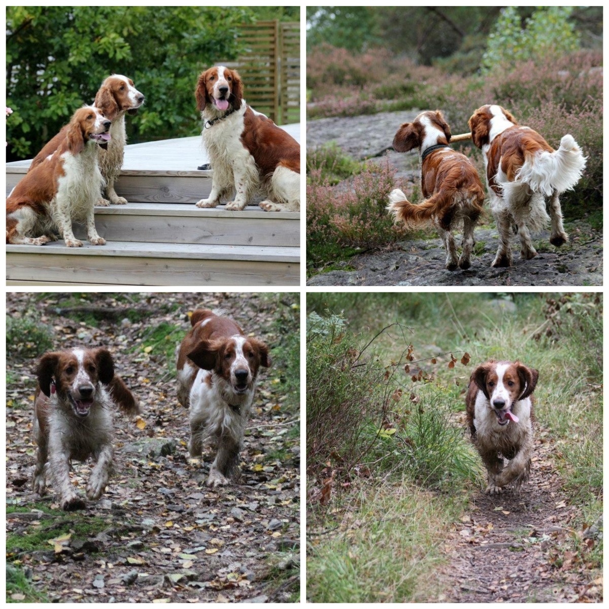 Det blev en härlig promenad i skogen med efterföljande fika. Vår Sintra, hennes bror Rufus och bådas mamma Jess blev lerigare och lerigare ju längre promenaden led och det var idel glada miner på alla. Tur med vädret hade vi också. Regnet kom först efter att vi hade kommit inomhus.