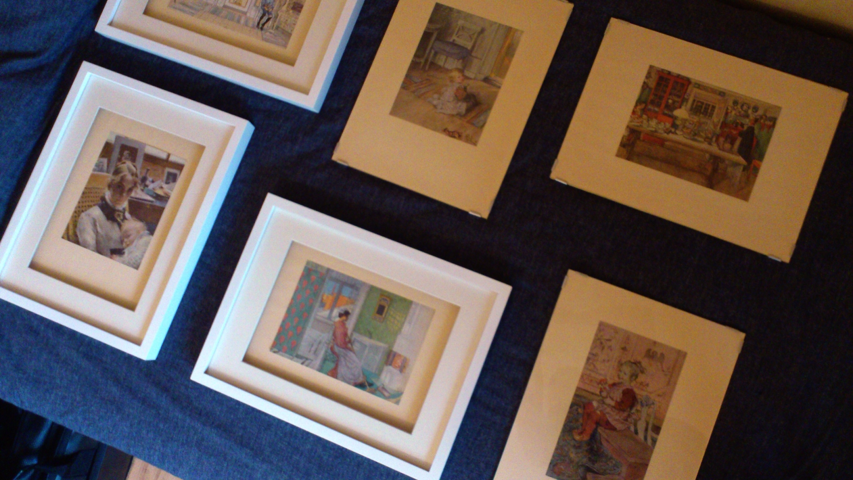 För många år sedan fick jag jättefina Carl Larsson tavlor av en släkting. Inga original men ändå lite finare än bara inramade bilder. De har periodvis hängt i sina ursprungliga glasramar men har de senaste tio åren legat halvt bortglömda i en klädkammare.