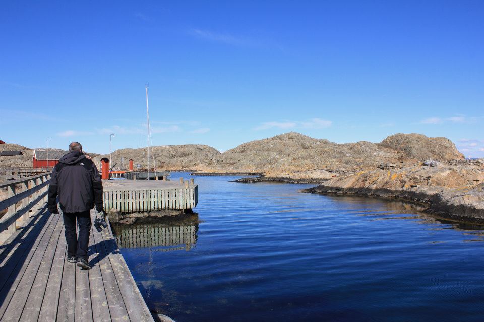 Utsikten vi vaknade till var något av det vackraste jag upplevt och efter frukosten satte vi oss i lä vid caféet och väntade på Bredbogen som skulle ta oss tillbaka till Fjällbacka.