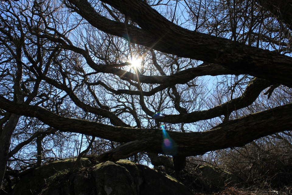 Det är inte bara klippor på Väderörna. Här har naturen med hjälp av träd skapat en plats som kallas ”Grottan”