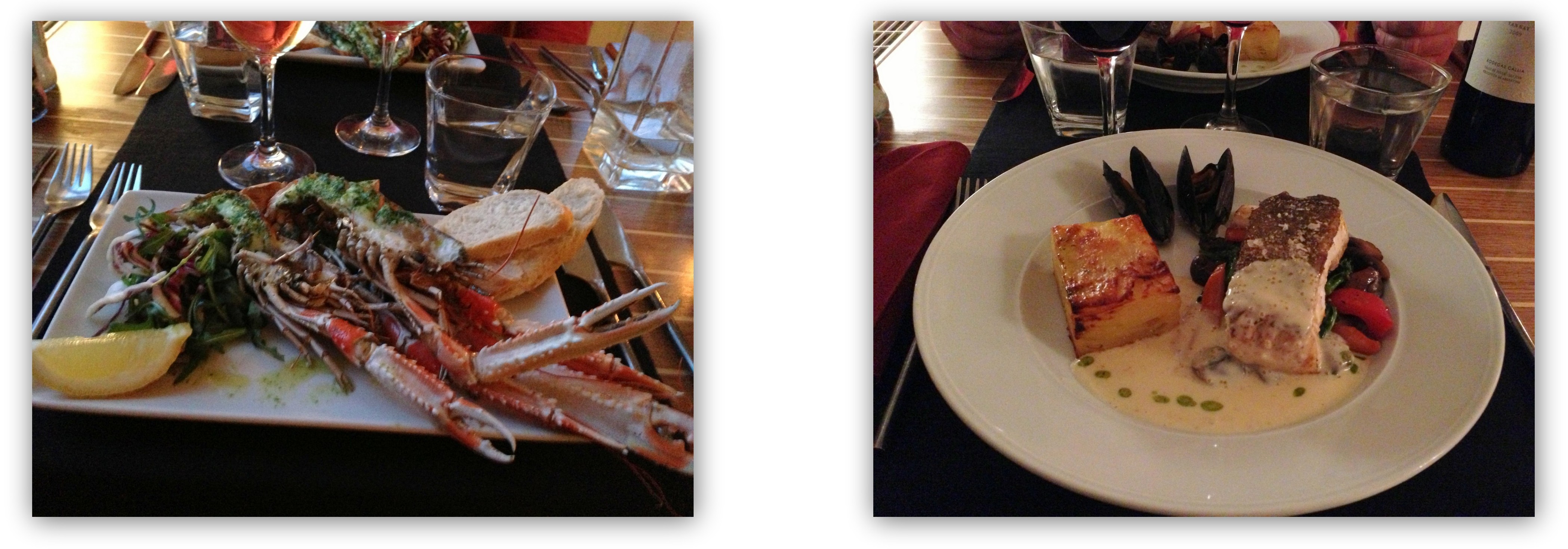 Istället satte vi oss vid dukat bord och blev mycket väl uppassade av ”vår” kock. Havskräftor till förrätt och Skrei med löjromssås till varmrätt och allt var fantastiskt gott. Löjromssåsen var en plan B eftersom kocken hade råkat bränna reduktionen till den ursprungliga såsen så mycket att brandlarmet gick. Hade vi inte vetat om det hade vi helt klart trott att såsen hörde till ursprungsmenyn. Några goda ostar och sedan var vi mer än belåtna och somnade gott. Vad som hände under natten får bli ett eget inlägg senare 🙂