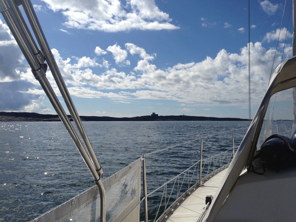Åska och snö har nämnts på väderprognoserna men än har vi inte råkat ut för någotdera. Det var sol när vi vaknade på Dyrön, det var sol när vi tog vägen om Rönnäng för att köpa motorolja och det var sol när vi lade till på Marstrand.