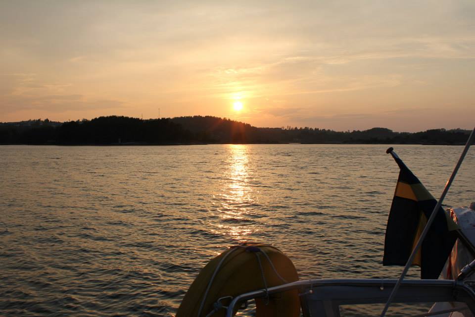 Kompisbåten Embla anslöt o vi fick en mycket trevlig kväll tillsammans. Det var bubbel, det var grill, det var Amarone och det var en fantastisk solnedgång. Ja och sen var det ju Mello också. Vi lät radion vara på och lyssnade nog bara lite då och då. Det fanns annat som var viktigare liksom.