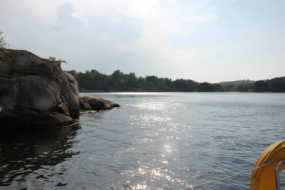 Väntan visade sig mödan värd och vi kunde lämna hamnen vid tretiden. Inte för att vi hade tänkt oss mycket längre än till Lilla Brattön men det var skönt att byta miljö och när vi kom dit var det som att komma till sommaren. Det var vindlä och solen gassade. Den gassade så mycket att jag till och med tog ett dopp (2 snabba) bara för att…