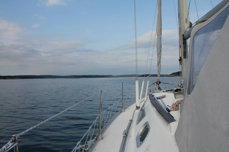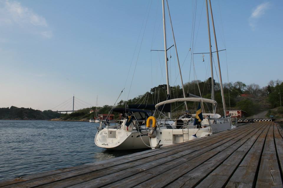 Men – vi trodde först inte att vi skulle komma iväg. Från vår plats vill säga. Det finns en vindriktning som är minst sagt obra i kombination med placeringen av båtplatsen och vår båt och det är nordost. Precis som det blåste i lördags när vi hade tänkt gå. Ja lite mer än vanligt blåste det men ändå inte så vansinnigt mycket. Ca 10 m/s i medelvind och det var tillräckligt för att vi skulle avvakta lite och hoppas att vinden skulle lägga sig lite i alla fall. Vi hade nog på känn att den nya motorn och bogropellern skulle vara ett bra stöd när vi väl kom loss men än hade vi inte hunnit leka med den och aningen trångt är det mellan raderna i Almösund. Det hade liksom inte känts bra att krocka med några båtar på väg ut.