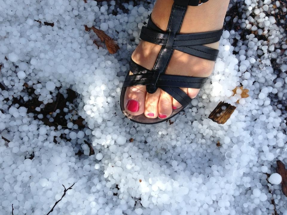 Vid tretiden hördes det först mullret. Ganska snart efter kom också de första regndropparna som sedan rätt omgående blev till hagel. Hagel i vanlig storlek först men som så sakteliga blev större och större.